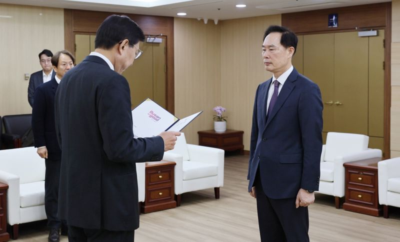 [파이낸셜뉴스] 신창호 신임 부산도시공사 사장이 5일 오전 11시께 부산시청 의전실에서 박형준 부산시장으로부터 임명장을 수여받았다. 그의 임기는 임명일인 이날부터 3년이다.
