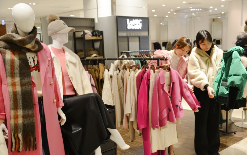 롯데백화점 광복점이 개점 15주년을 맞아 고객들을 위한 특별한 프로모션을 준비했다. 백화점 4층 컨템포러리 여성의류 브랜드 '르니앤맥코이'에서 여성 고객들이 다양한 아우터를 살펴보고 있다. 롯데백화점 제공