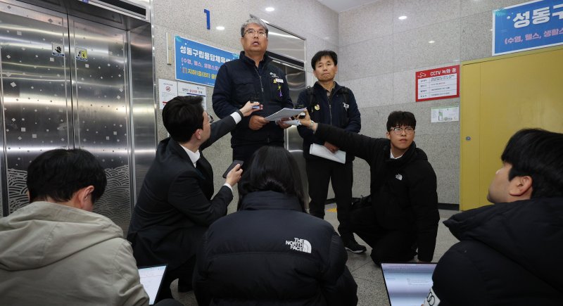 김태균 서울교통공사 제1노조 위원장이 6일 새벽 서울 성동구 서울교통공사 인재개발원에서 사측과의 교섭을 타결한 뒤 취재진과 인터뷰하고 있다.뉴스1