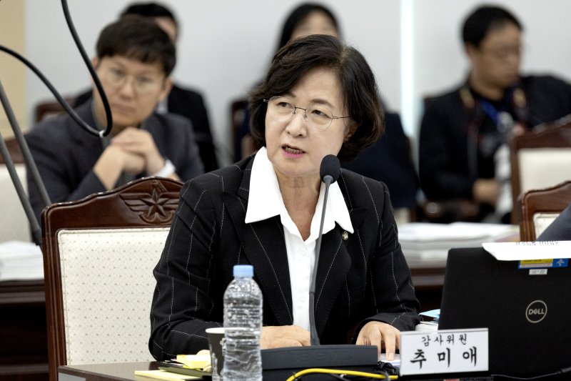 지난 10월 8일 오전 서울 용산구 국방부에서 열린 국회 국방위원회 국정감사에서 추미애 더불어민주당 의원이 질의하고 있다. 사진=뉴시스