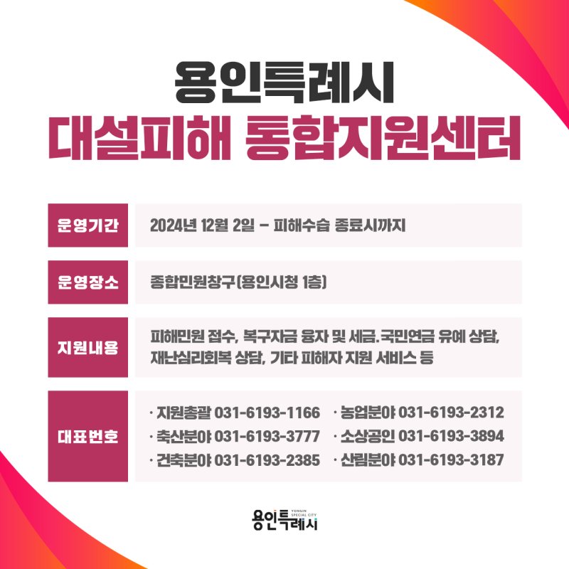 용인시 폭설 피해 상담 통합지원센터 운영 안내 포스터. 용인시 제공