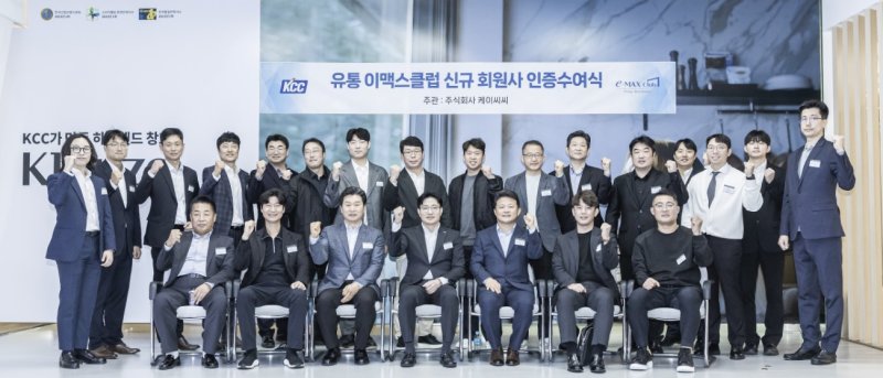 KCC '유통 이맥스 클럽' 신규 대리점 25곳 인증식에 참석자들이 기념 촬영을 하고 있다. KCC 제공