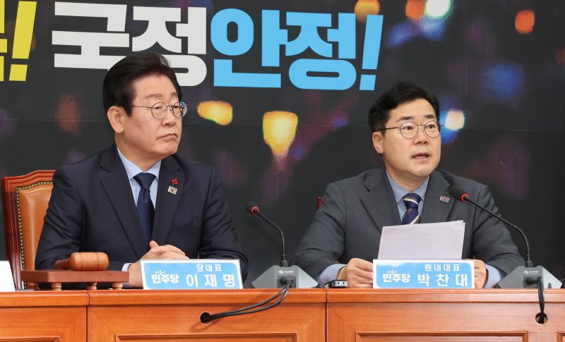 더불어민주당 박찬대 원내대표가 18일 오전 서울 여의도 국회에서 열린 최고위원회의에서 발언하고 있다. 언합뉴스