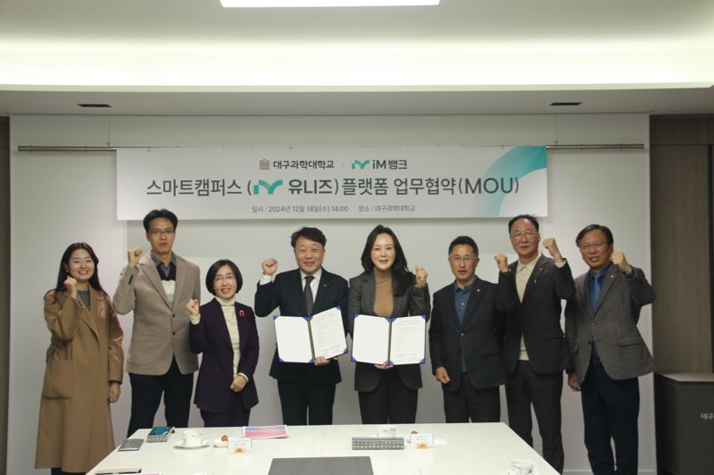 【파이낸셜뉴스 대구=김장욱 기자】 대구과학대와 iM뱅크가 스마트캠퍼스 플랫폼 구축을 위해 손을 맞잡았다.