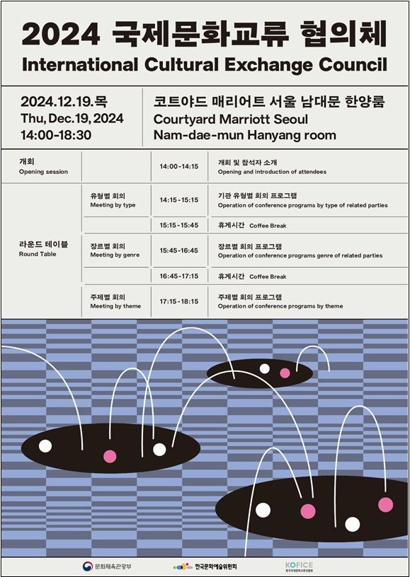 [파이낸셜뉴스] 문화체육관광부와 한국국제문화교류진흥원은 19일 코트야드 메리어트 서울 남대문 호텔에서 '2024년 국제문화교류 협의체 워크숍'을 개최한다.