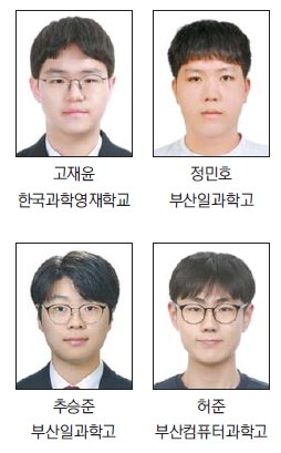 부산에선 한국과학영재학교 고재윤 학생, 부산일과학고등학교 정민호·추승준 학생, 부산컴퓨터과학고등학교 허준 학생(이하 3학년)이 선정됐다.
