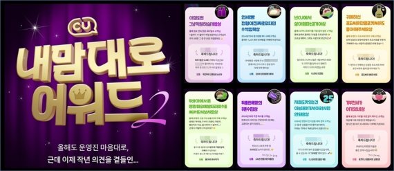 정현정 BGF리테일 온라인플랫폼팀장은 "지난해 열린 제1회 내 맘대로 어워드 후 이어진 뜨거운 고객 반응과 다양한 아이디어를 참고해 내 맘대로 어워드 2를 보다 다채롭게 구성할 수 있었다"며 "앞으로도 CU는 CU만이 줄 수 있는 차별화된 경험을 꾸준히 제공하며 독보적인 O4O 유통채널로 자리 잡을 것"이라고 말했다.