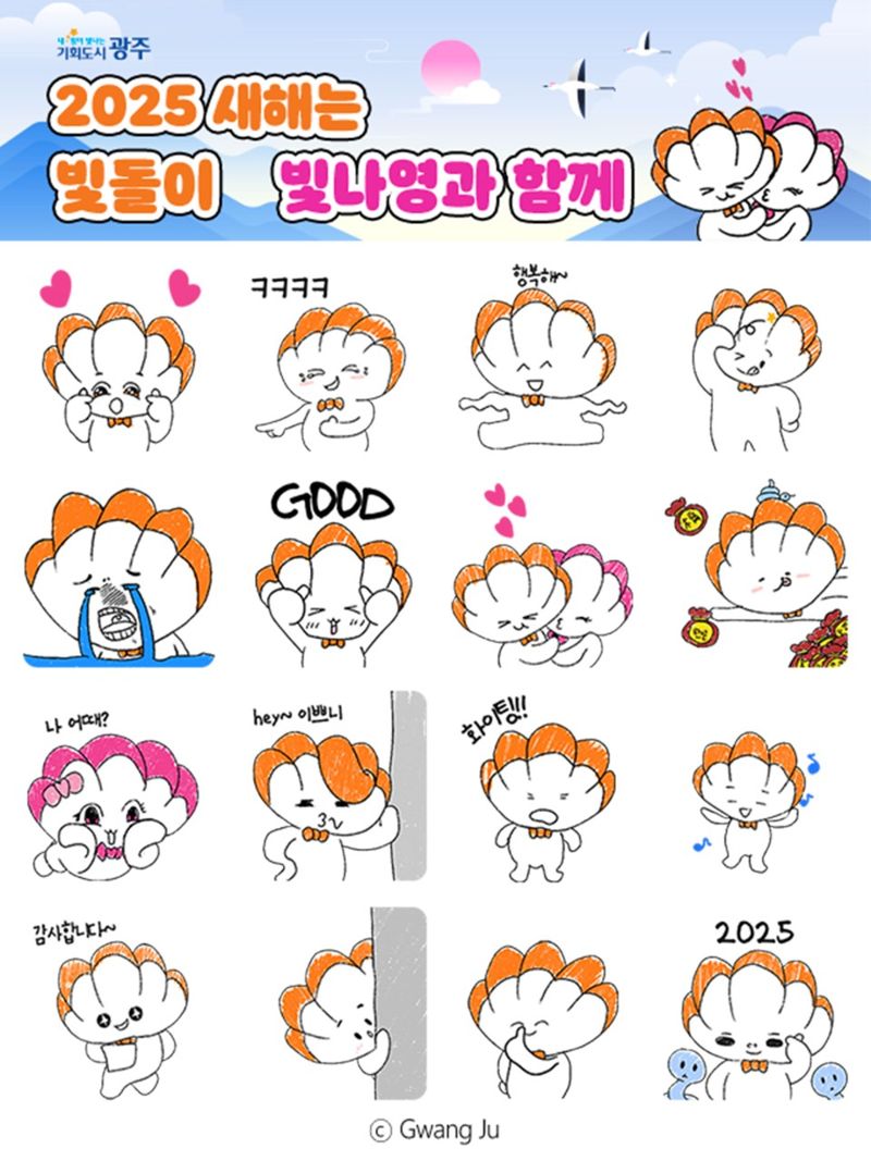 박광석 광주시 대변인은 "올 한 해 광주는 한강 작가의 노벨문학상 수상, KIA 타이거즈 우승, 광주FC의 아시아챔피언스리그 출전 등 시민들에게 힘이 되고 기쁨이 되는 일이 많았다"면서 "시민들이 '빛돌이' 이모티콘을 통해 서로의 안부를 챙기는 등 훈훈한 연말연시를 보내길 바란다"라고 말했다.