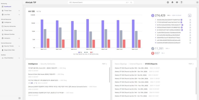 [파이낸셜뉴스] 안랩은 자사의 위협 인텔리전스 플랫폼 '안랩 TIP'에 운영 기술·산업제어시스템(OT·ICS) 카테고리 추가 등 콘텐츠를 업데이트했다고 27일 밝혔다.