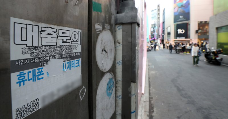 서울 중구 명동거리에 대출 관련 스티커가 붙어있다. 사진=뉴스1