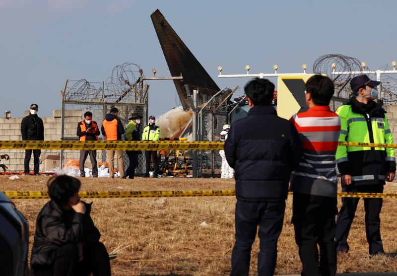 29일 전남 무안국제공항 제주항공 여객기 사고 현장이 통제되고 있다. 연합뉴스