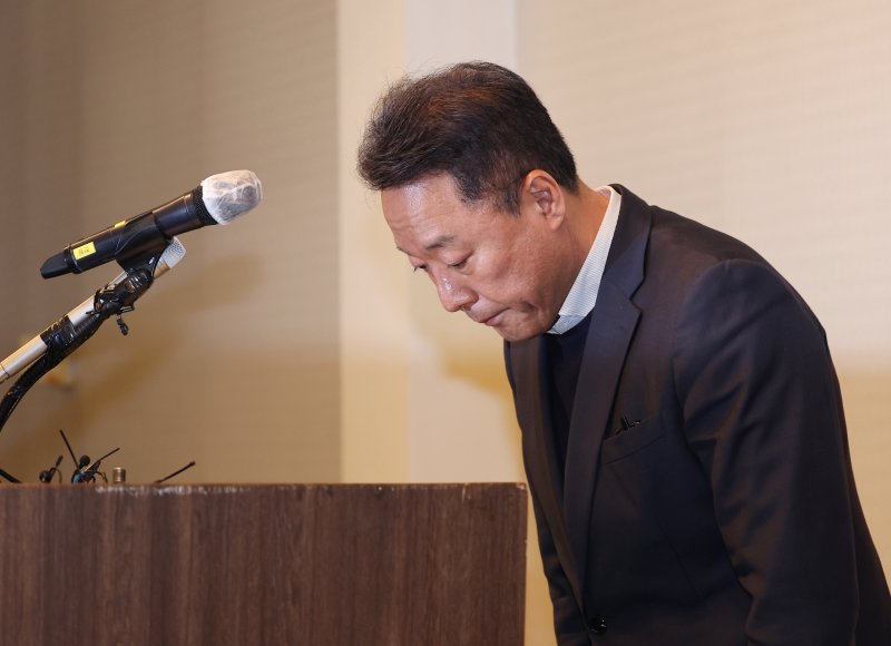 송경훈 제주항공 경영지원본부장이 30일 서울 강서구 메이필드 호텔에서 진행된 무안공항 여객기 참사 관련 3차 브리핑에 앞서 고개 숙여 사죄하고 있다. 연합뉴스