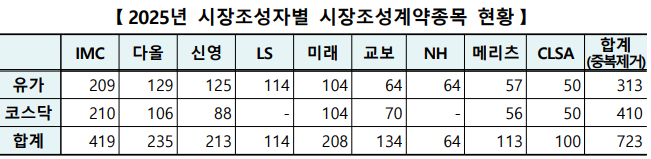 한국거래소 2025년도 시장조성자별 시장조성계약종목 현황