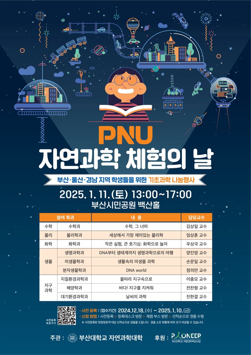 부산대 자연과학대학(학장 정재훈·분자생물학과 교수)이 주최하는 이번 행사는 부산·울산·경남 지역 학생들을 대상으로 자연과학의 재미와 가치를 나누기 위해 마련됐다.