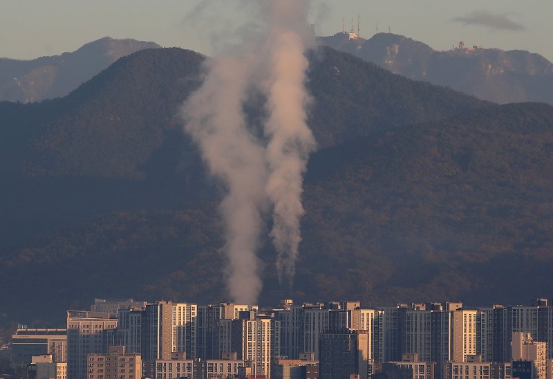 대구 동구 혁신도시 일대 지역난방을 위한 열 공급설비가 가동되자 굴뚝에서 수증기가 연기처럼 피어오르고 있다. 뉴스1