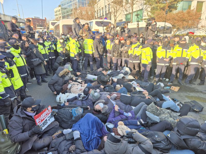 경찰은 관저 정문 앞에서 드러누운 채 농성을 벌이고 있는 지지자 20여명을 상대로 이날 오후 4시46분부터 물리력을 사용해 도로 밖으로 이동시켰다. 지지자들은 "이재명 구속" 등 구호를 외치고, 고성을 질렀으나 극심하게 저항하지는 않았다.