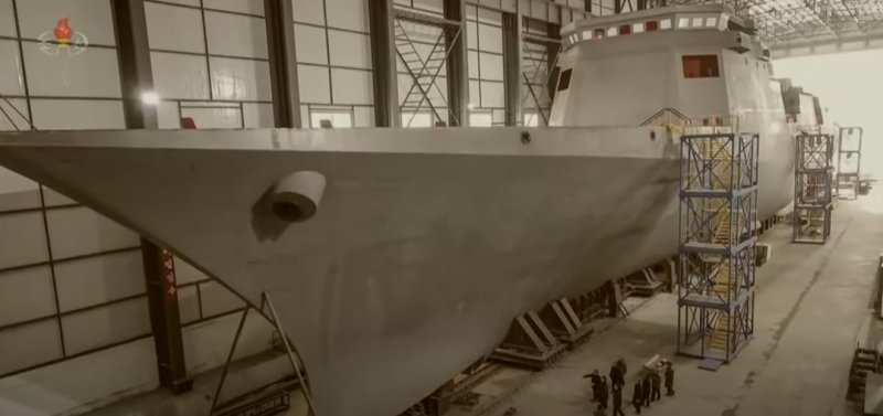북한 조선중앙TV는 지난해 12월 29일 '당 중앙위원회 제8기 제11차 전원회의 확대회의'에 관한 보도를 하면서 북한 김정은이 새로 건조 중인 신형 함선을 시찰하는 사진을 보도했다. 사진=조선중앙TV 캡처