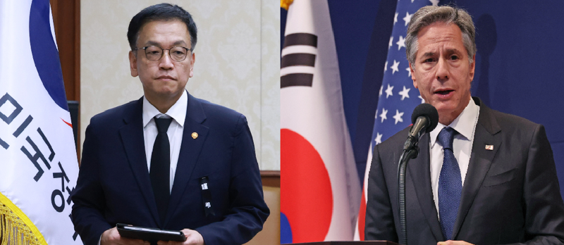 다만 최 대행과 블링컨 장관 면담에 조 장관은 배석하지 않는다. 지난 2023년 11월 블링컨 장관이 방한해 윤 대통령을 예방했을 때는 외교장관이 배석했던 것과는 대비된다. 대통령이 아닌 권한대행 부총리라는 격의 차이를 고려한 것으로 보인다.