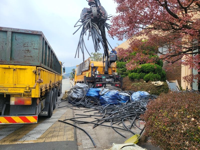 부산교통공사가 매각된 케이블류 등 불용품을 반출하고 있다. 공사 제공