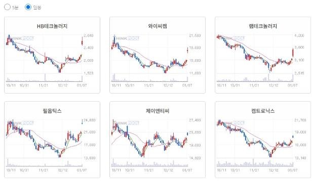 : HB테크놀러지, 와이씨켐, 램테크놀러지, 필옵틱스, 제이앤티씨