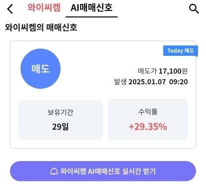| #와이씨켐 | 20.75% | [오늘매도] |
