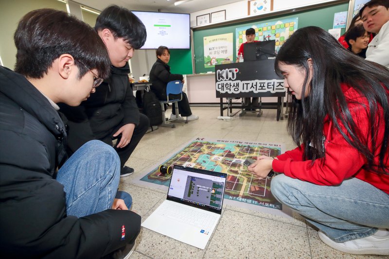 KT는 지난해에 KIT 봉사단원들과 함께 인천 옹진군 백령중학교와 전북 익산시 성당중학교에서 찾아가는 AI 교육을 진행한 바 있다.