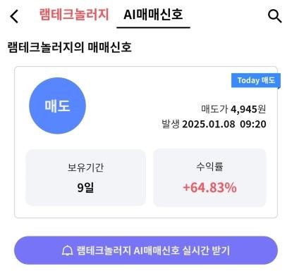 또한 개별 종목에서 나의 보유 매수가를 입력하면, 나만의 매도신호도 개별적으로 받을 수 있다.