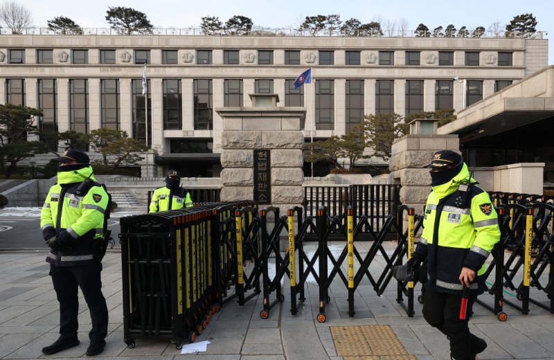 8일 서울 종로구 헌법재판소에서 경찰이 경계 근무를 하고 있다. /사진=뉴스1