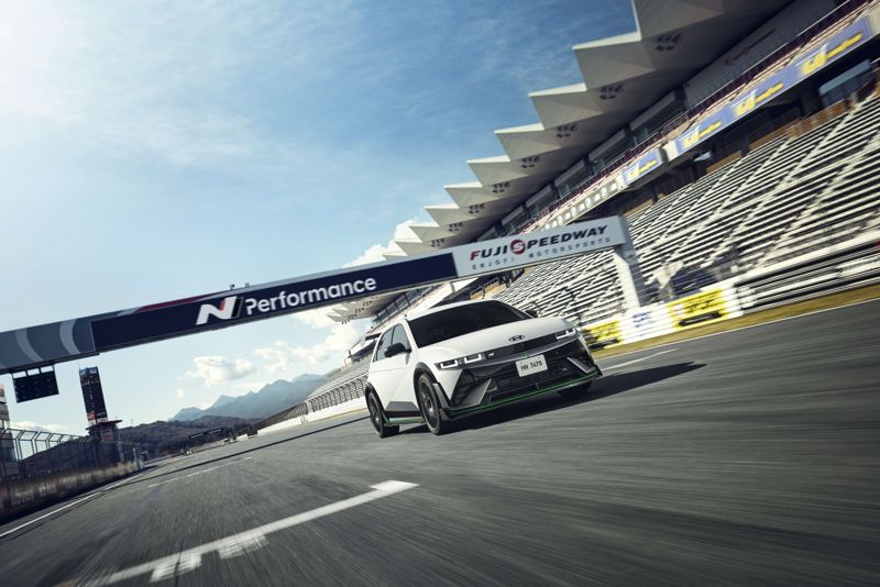 일본 시즈오카에 위치한 후지 스피드웨이 서킷에서 현대차 아이오닉5 N DK 에디션이 주행하는 모습. 현대차 제공