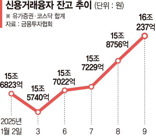 12일 금융투자협회에 따르면 지난 9일 신용거래융자 규모는 16조237억원으로 한 달여 만에 16조원대를 회복했다. 지난 3일 이후 4거래일 연속 증가세다.