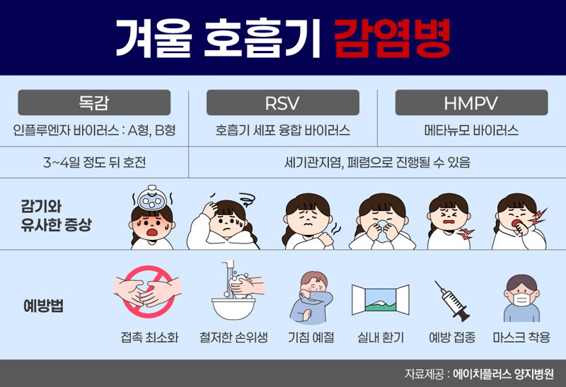 양무열 에이치플러스 양지병원 소아청소년과 전문의는 “호흡기 감염병은 나이가 어릴수록 제때 치료하지 않으면 합병증으로 이어질 수 있다”라며 “감기와 증상이 비슷해 지나치는 경우가 많은데 신생아나 영유아의 경우 호흡기 증상이 생기면 신속하게 치료받는 것이 필요하다”고 말했다.