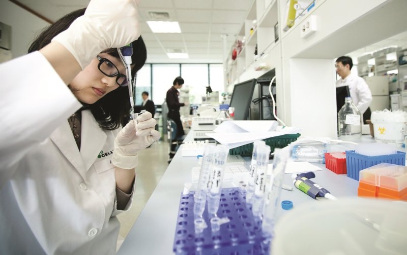 셀트리온 연구원이 후보물질을 살펴보고 있다. 셀트리온