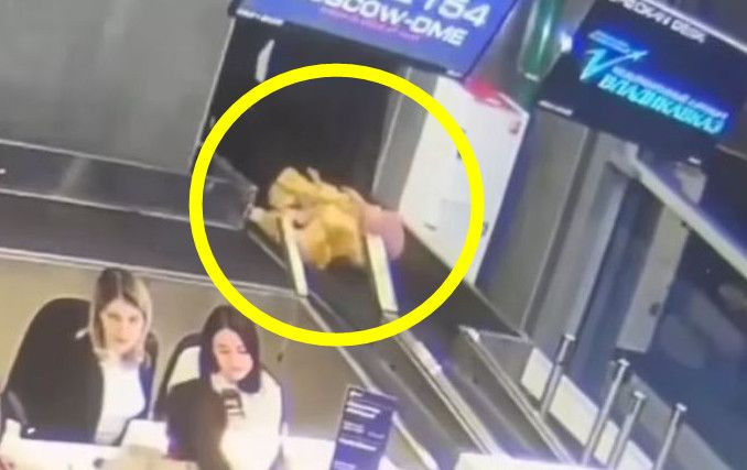 9일(현지시각) 영국 데일리메일에 따르면 블라디캅카스 공항에서 모스크바 도모데도보 공항으로 가는 S7 비행기에 탑승하기 위해 체크인 데스크를 찾았던 러시아의 한 여성이 작동중인 컨베이어 벨트 위로 걸어 올라가는 장면이 포착됐다.