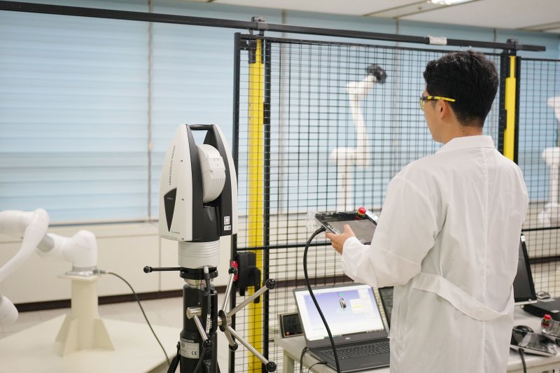 KTL의 연구원이 로봇의 성능시험을 진행하고 있는 모습 KTL제공
