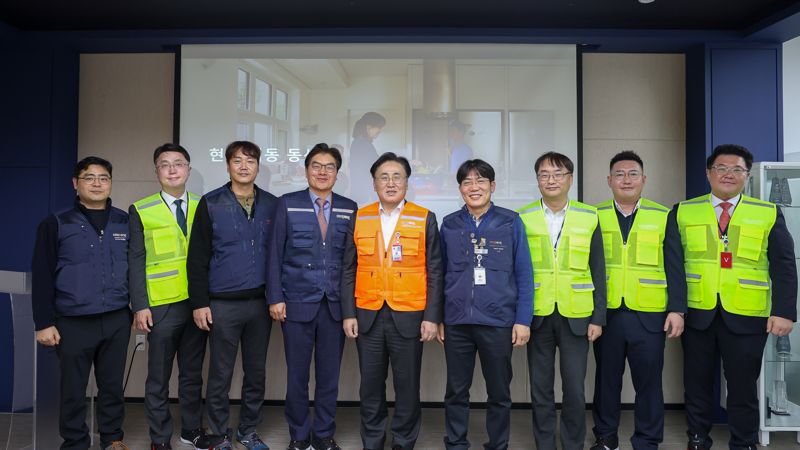 유상임 과학기술정보통신부 장관(왼쪽 다섯번째)이 15일 오후 경기도 화성시 쿠팡 동탄 물류센터를 방문해 관계자들과 기념촬영을 하고 있다. 쿠팡 제공