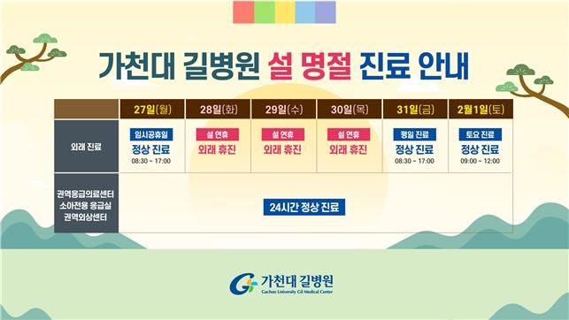 가천대 길병원은 긴 연휴 기간 중증 환자 진료에 불편함이 없도록 임시 공휴일로 지정된 27일 모든 외래 진료를 정상 운영한다. 예약된 수술, 검사 등도 예정대로 실시한다.