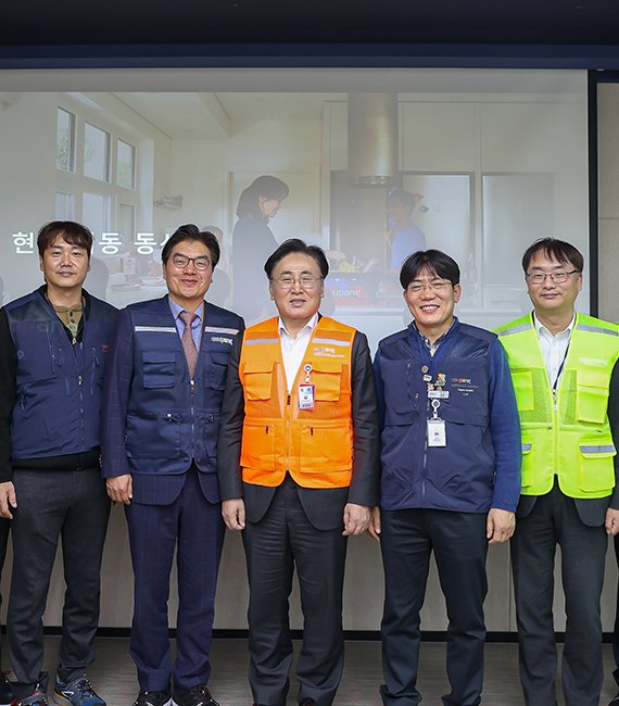 유상임 과학기술정보통신부 장관(왼쪽 세번째)이 15일 오후 경기 화성시 쿠팡 동탄 물류센터를 방문해 관계자들과 기념촬영을 하고 있다. 쿠팡 제공