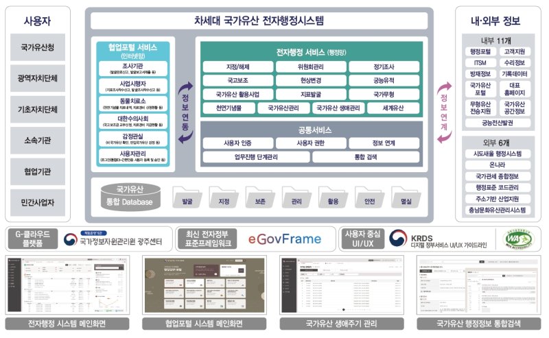 '차세대 국가유산 전자행정시스템'은 국가유산청이 지난 2004년부터 운영해온 기존 시스템을 고도화하고 활용도를 향상시킨 시스템이다.