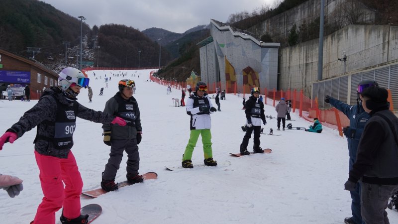지난해 12월 15일 강원도 정선 하이원스키장에서 열린 '고고스키 페스티벌'에 참여한 외국인 관광객들이 스키 강습을 받고 있다. 강원랜드 제공
