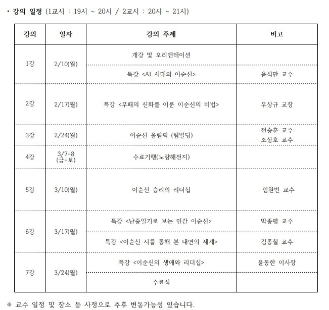 이순신 장군 관련 강연 일정 서울여해재단 제공