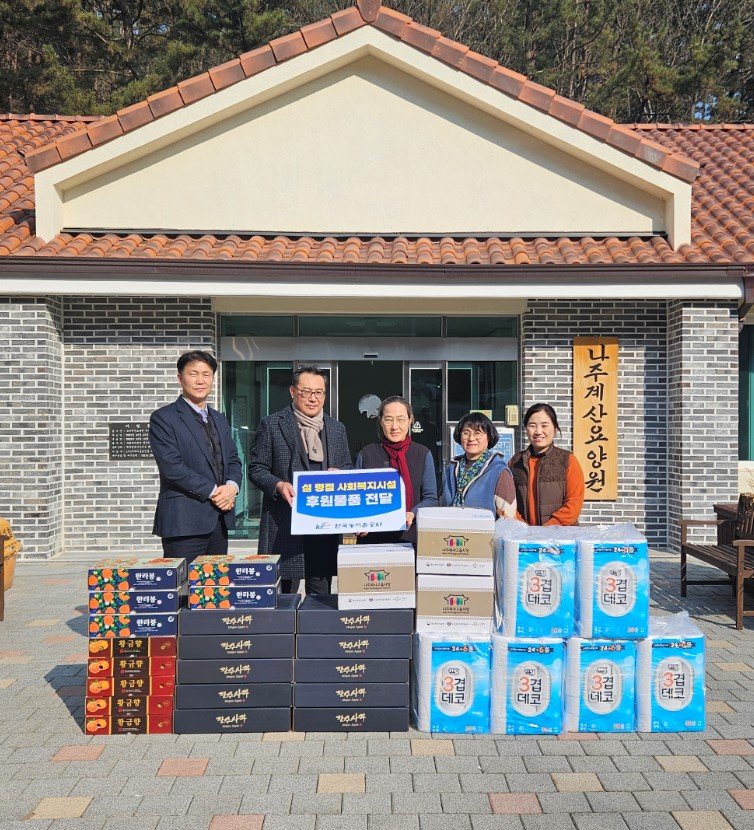 [파이낸셜뉴스] 한국농어촌공사는 설 명절을 앞두고 지역 내 소외계층을 살펴 모두가 따뜻한 명절을 보낼 수 있도록 인근 사회복지시설 4곳(계산원·효정원·이화영화원·나주시장애인주간보호센터)에 후원품을 전했다고 21일 밝혔다.
