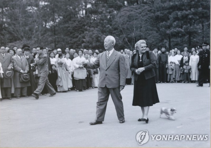 프란체스카 도너 리는 이승만 전 대통령의 영원한 동반자였다. 지난 1955년 열린 경무대 개방행사에 참석한 이 전 대통령과 프란체스카 여사. 아래쪽은 1962년 3월 AP통신이 이 전 대통령 인터뷰를 실으면서 게재한 하와이 요양병원 사진. AP연합뉴스