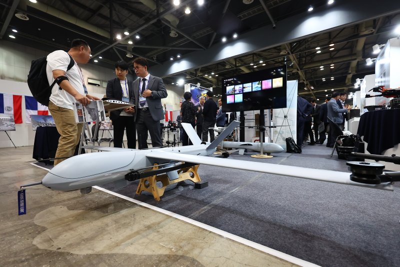 지난해 9월 25일 경기 고양 킨텍스에서 열린 제6회 대한민국 방위 산업전에서 관람객들이 제품을 살펴보고 있다. 사진=뉴시스