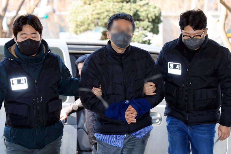 서울서부지방법원 폭력 집단난동 사태 당시 판사실에 침입한 40대 남성 이모 씨가 23일 오후 서울 마포구 서울서부지법에서 열린 영장실질심사에 출석하고 있다. 이 씨는 전광훈 목사가 이끄는 사랑제일교회의 '특임 전도사'로 알려졌으며, 지난 19일 서부지법 7층까지 올라가 판사의 집무실 출입문을 부수고 침입한 혐의로 긴급체포됐다.(공동취재) 사진=뉴스1화상