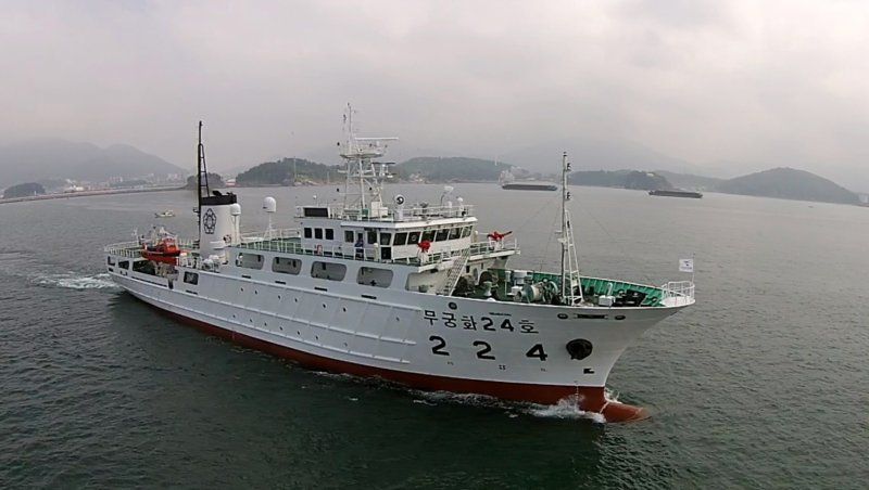 1600t급 대형 국가어업지도선 무궁화24호. 2022년 3월 14일 서해를 순시하던 어업지도선 무궁화호가 서해 제2광구 한중 잠정조치수역에서 중국이 몰래 석유 시추 구조물을 설치해 놓은 것으로 확인됐다. 해당 수역은 경계선 획정을 유보해둔 곳으로 한중어업협정에 따라 어업 행위를 제외한 지하자원 개발이나 시설물 설치 등은 금지돼 있다. 사진=해양수산부