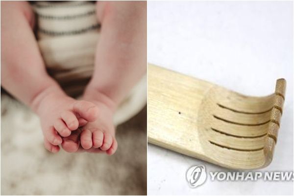 효자손으로 때리고 밀치는 학대