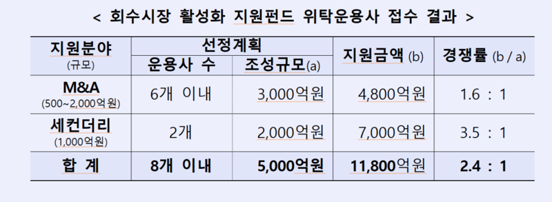 M&A, 세컨더리 분야에 11개사 지원..2.4:1 경쟁률 기록