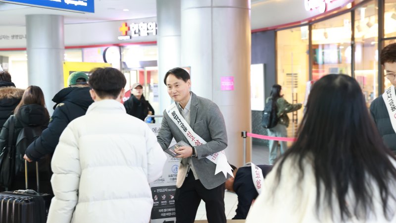 김성욱 금융감독원 민생금융 부원장보가 24일 진행된 '불법사금융 피해예방 및 대응 안내 현장 캠페인'에서 시민들에게 홍보물품을 배포하고 있다. 금융감독원 제공