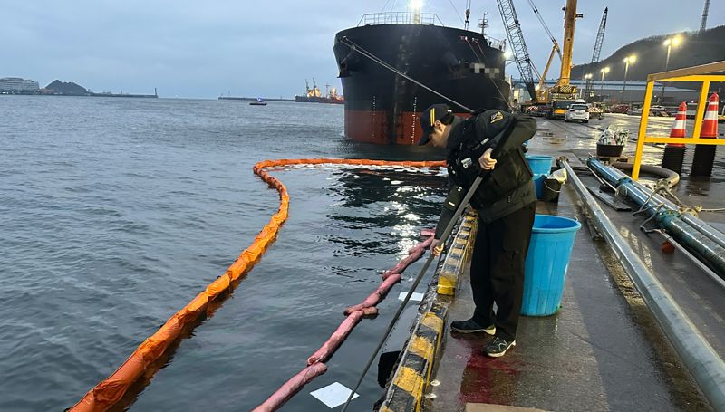 현장에 출동한 해경은 6부두 내 분포된 기름 수준이 500여㎡인 것으로 파악하고 오염 확산 방지를 위해 오일펜스를 긴급 설치했다.