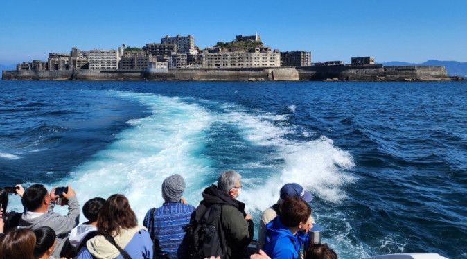 유람선에서 군함도를 바라보는 관광객들.사진=서경덕 교수 SNS 캡처